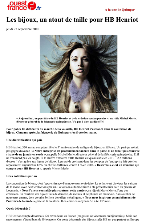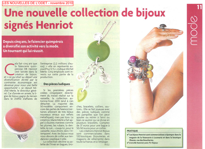 Henriot Bijoux - la marque tendance de bijouterie fantaisie de la faïencerie - présentera sa nouvelle collection automne-hiver du 2 au 5 septembre 2011 à Paris au salon Eclat de Mode.