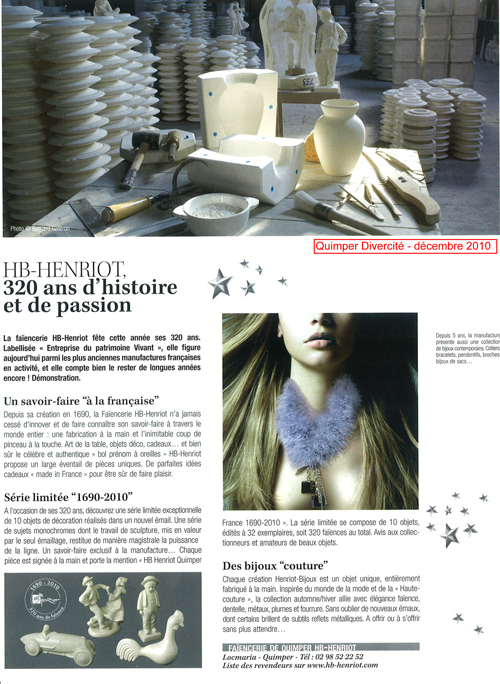 Vous pouvez télécharger la newsletter Henriot-Quimper ici.